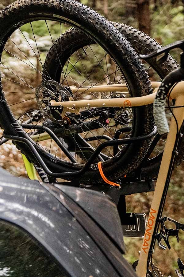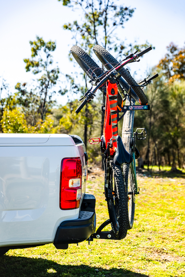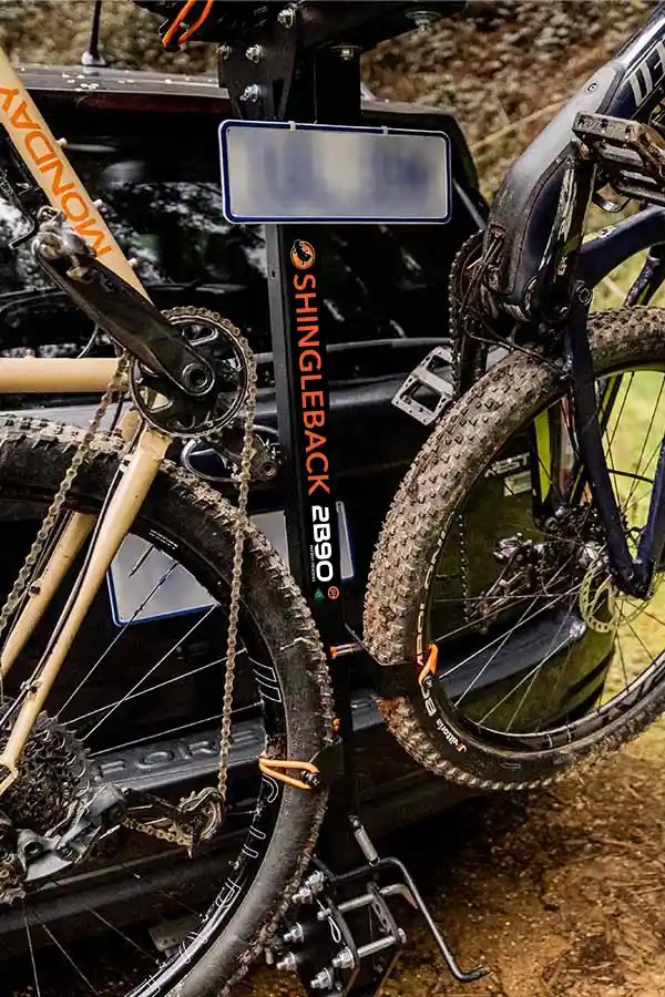 The innovative Shingleback 2B90 vertical bike rack offers all the features of our standard Shingleback vertical bike rack but with a twist. This ingenious design rotates the bikes 90 degrees, which means it only projects approx. 500mm at the rear of the vehicle. The 2B90 is Australia’s top choice for 2 bike vertical bike racks!