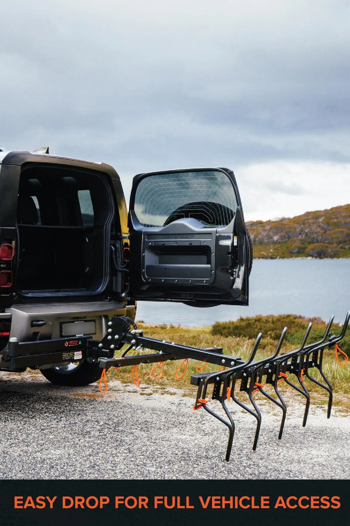 Foot Latch Mechanism enables you to tilt the rack creating easy access to the rear of your vehicle, even when loaded.