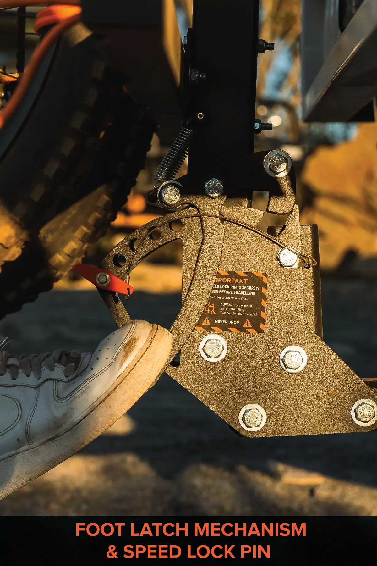 The Speed Lock Pin enables one-handed operation and is attached by a lanyard so it wont be lost.